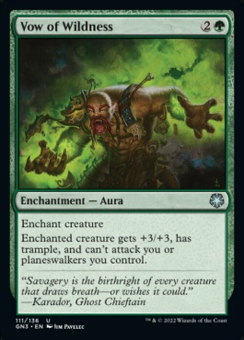 Enchanted creature gets +3/+3, has trample, and can't attack you or planeswalkers you control.