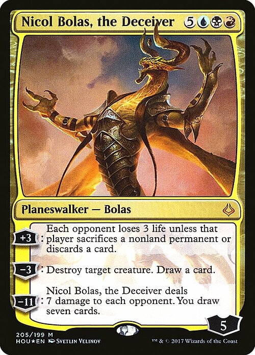 −11: Nicol Bolas deals 7 damage to each opponent. You draw seven cards.