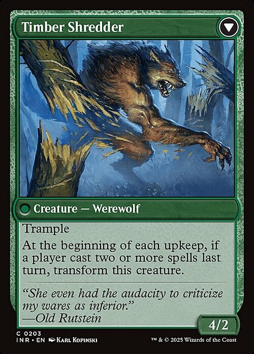 At the beginning of each upkeep, if a player cast two or more spells last turn, transform this creature.