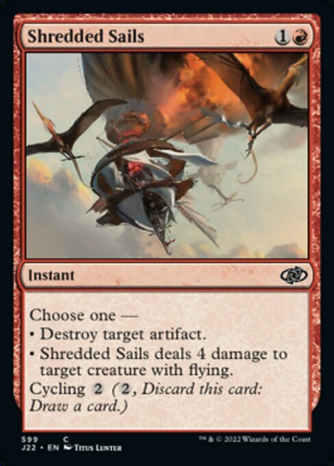 • Shredded Sails deals 4 damage to target creature with flying.