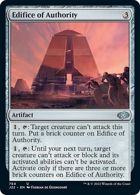 {1}, {T}: Target creature can't attack this turn. Put a brick counter on this artifact.