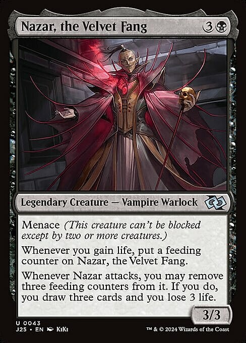 Whenever Nazar attacks, you may remove three feeding counters from it. If you do, you draw three cards and you lose 3 life.