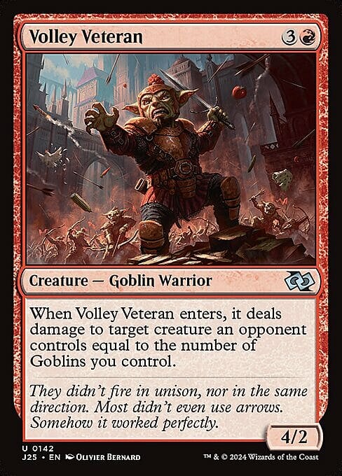 When this creature enters, it deals damage to target creature an opponent controls equal to the number of Goblins you control.