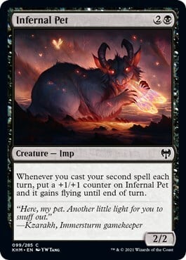 Whenever you cast your second spell each turn, put a +1/+1 counter on this creature and it gains flying until end of turn.