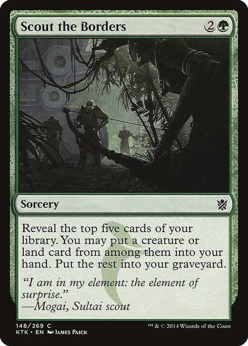 Reveal the top five cards of your library. You may put a creature or land card from among them into your hand. Put the rest into your graveyard.