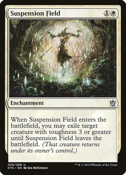 When this enchantment enters, you may exile target creature with toughness 3 or greater until this enchantment leaves the battlefield. (That creature returns under its owner's control.)