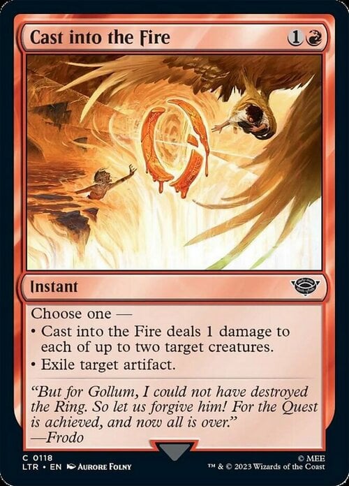 • Cast into the Fire deals 1 damage to each of up to two target creatures.
