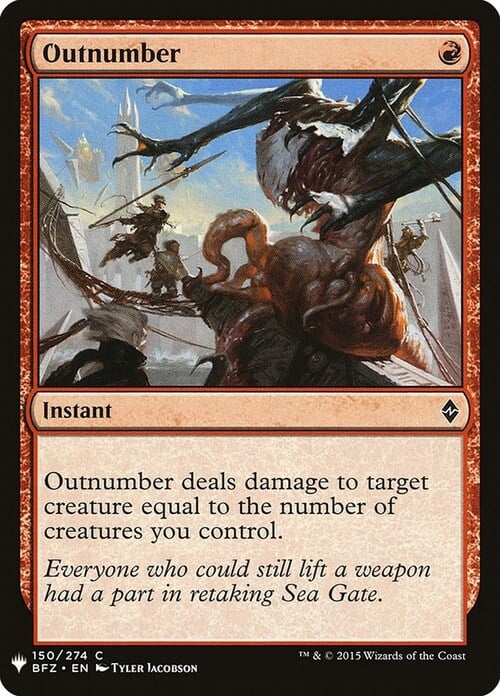 Outnumber deals damage to target creature equal to the number of creatures you control.