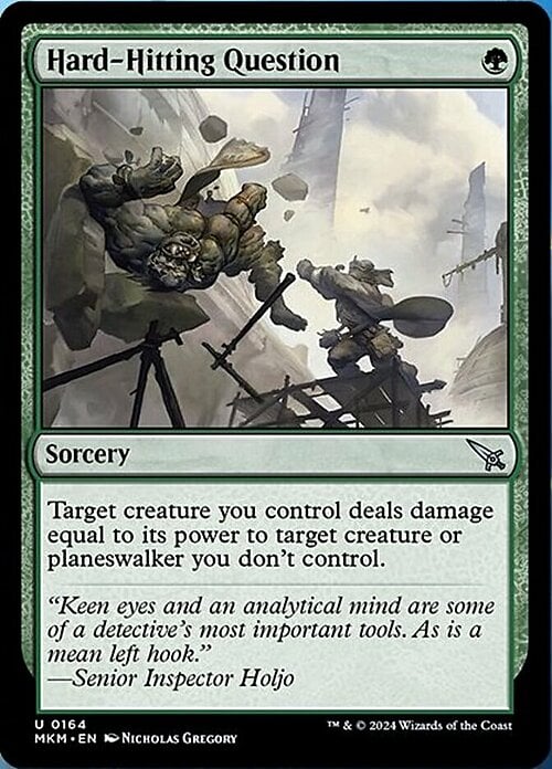 Target creature you control deals damage equal to its power to target creature or planeswalker you don't control.