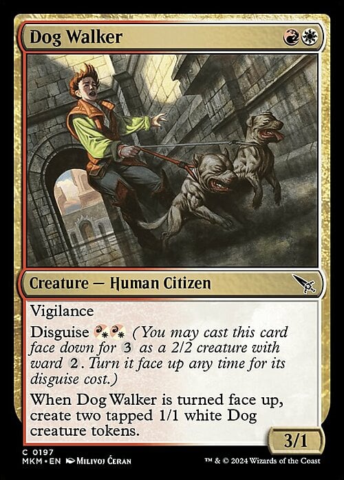 When this creature is turned face up, create two tapped 1/1 white Dog creature tokens.