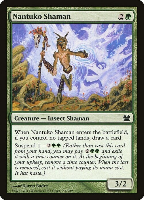 Suspend 1—{2}{G}{G} (Rather than cast this card from your hand, you may pay {2}{G}{G} and exile it with a time counter on it. At the beginning of your upkeep, remove a time counter. When the last is removed, you may cast it without paying its mana cost. It has haste.)