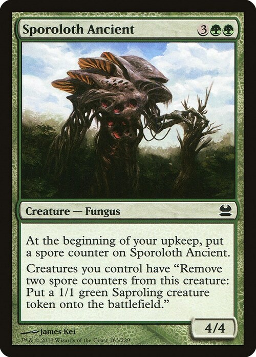 Creatures you control have "Remove two spore counters from this creature: Create a 1/1 green Saproling creature token."