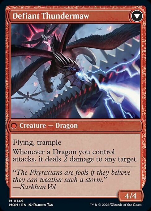 Whenever a Dragon you control attacks, it deals 2 damage to any target.