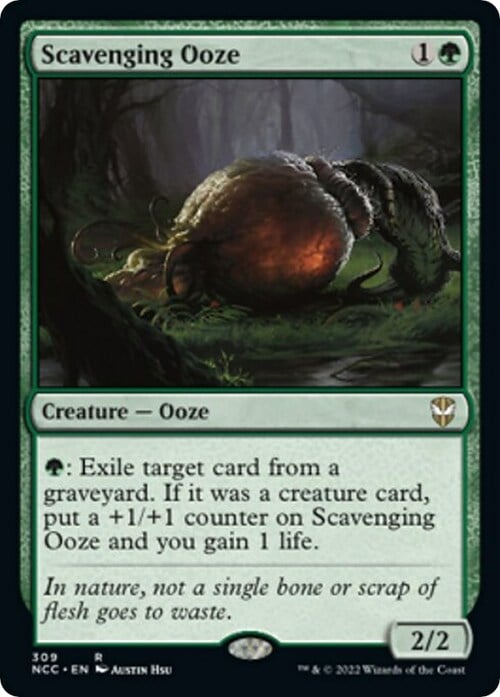 {G}: Exile target card from a graveyard. If it was a creature card, put a +1/+1 counter on this creature and you gain 1 life.