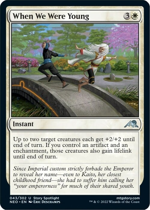 Up to two target creatures each get +2/+2 until end of turn. If you control an artifact and an enchantment, those creatures also gain lifelink until end of turn.