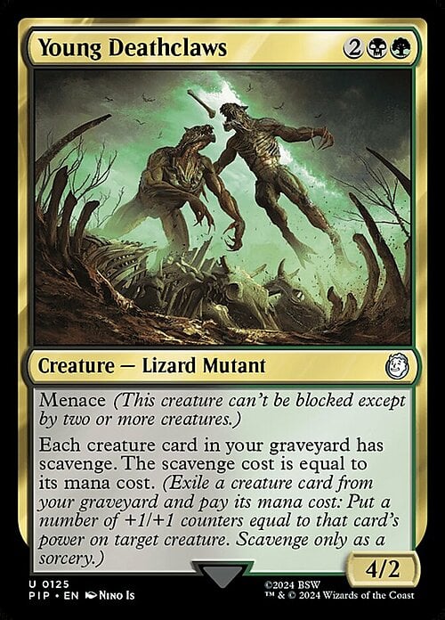 Each creature card in your graveyard has scavenge. The scavenge cost is equal to its mana cost. (Exile a creature card from your graveyard and pay its mana cost: Put a number of +1/+1 counters equal to that card's power on target creature. Scavenge only as a sorcery.)