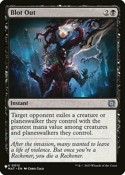 Target opponent exiles a creature or planeswalker they control with the greatest mana value among creatures and planeswalkers they control.