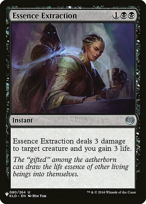 Essence Extraction deals 3 damage to target creature and you gain 3 life.