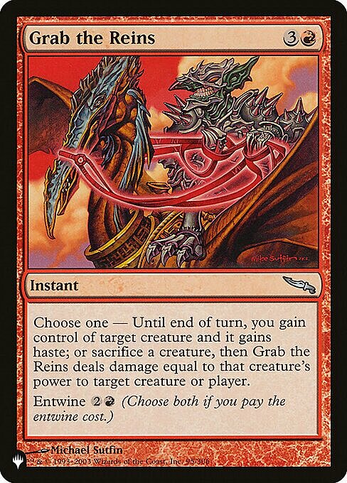 • Sacrifice a creature. Grab the Reins deals damage equal to that creature's power to any target.