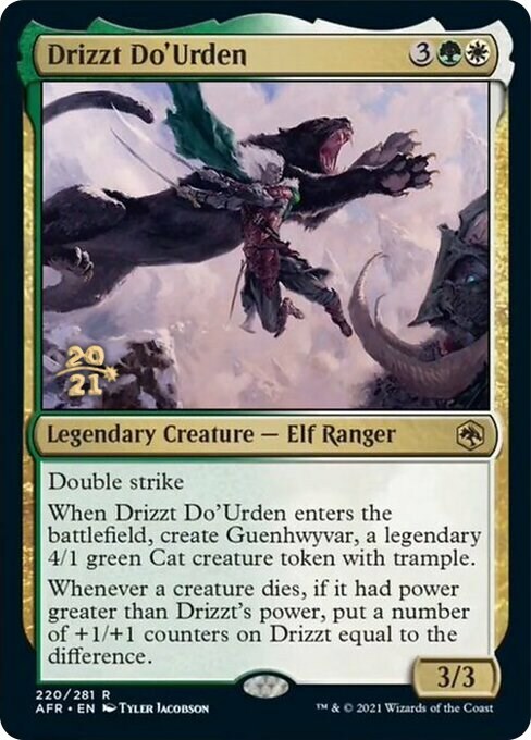 When Drizzt enters, create Guenhwyvar, a legendary 4/1 green Cat creature token with trample.