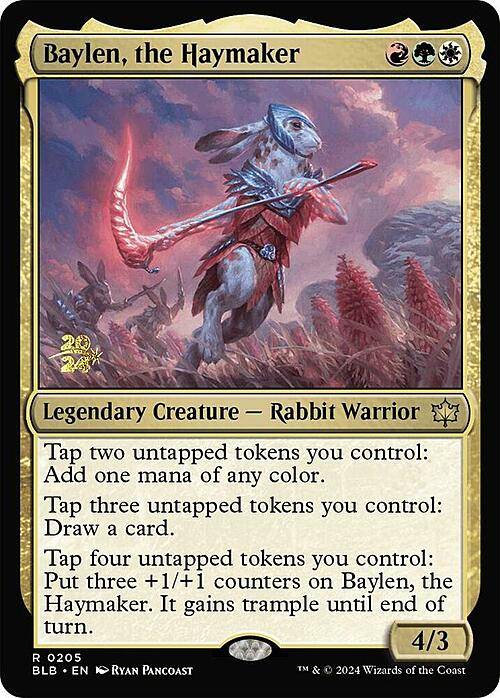 Tap four untapped tokens you control: Put three +1/+1 counters on Baylen. It gains trample until end of turn.