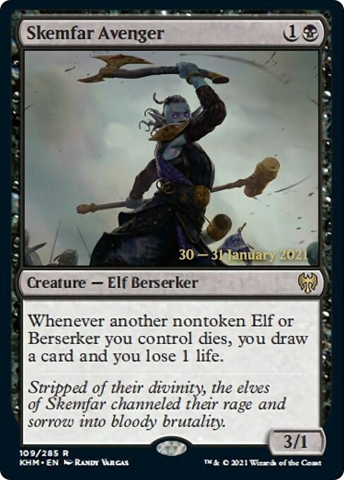 Whenever another nontoken Elf or Berserker you control dies, you draw a card and you lose 1 life.