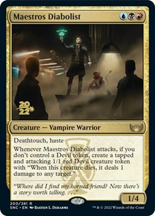 Whenever this creature attacks, if you don't control a Devil token, create a tapped and attacking 1/1 red Devil creature token with "When this token dies, it deals 1 damage to any target."