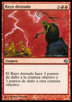 Jagged Lightning deals 3 damage to each of two target creatures.