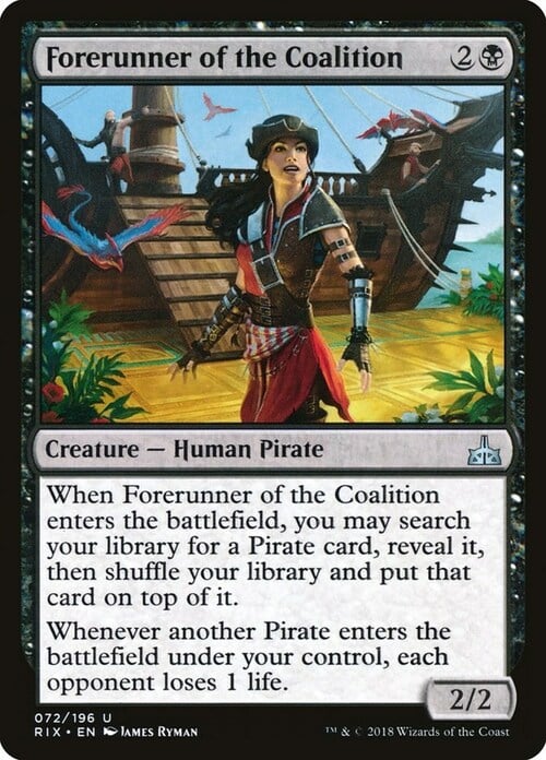 When this creature enters, you may search your library for a Pirate card, reveal it, then shuffle and put that card on top.