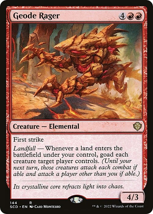 Landfall — Whenever a land you control enters, goad each creature target player controls. (Until your next turn, those creatures attack each combat if able and attack a player other than you if able.)