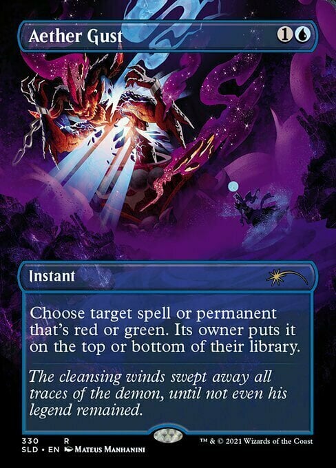 Choose target spell or permanent that's red or green. Its owner puts it on their choice of the top or bottom of their library.