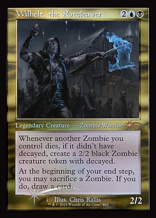Whenever another Zombie you control dies, if it didn't have decayed, create a 2/2 black Zombie creature token with decayed. (It can't block. When it attacks, sacrifice it at end of combat.)
