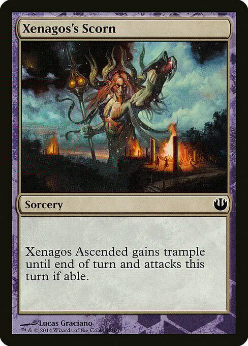 Xenagos Ascended gains trample until end of turn and attacks this turn if able.