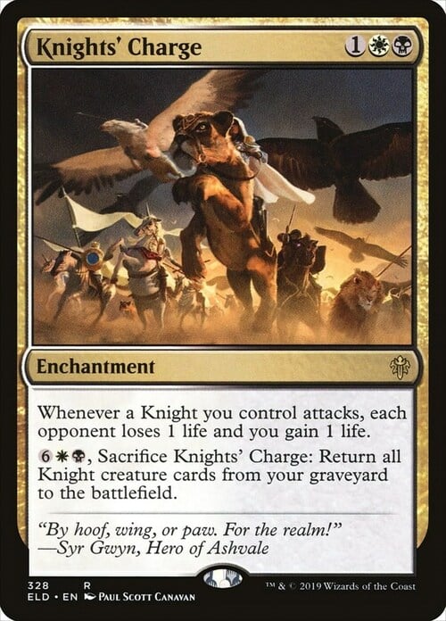 Whenever a Knight you control attacks, each opponent loses 1 life and you gain 1 life.