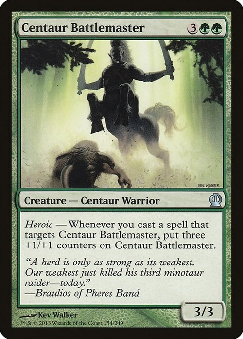 Heroic — Whenever you cast a spell that targets this creature, put three +1/+1 counters on this creature.