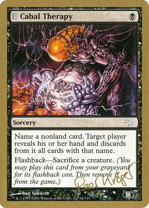 Choose a nonland card name. Target player reveals their hand and discards all cards with that name.