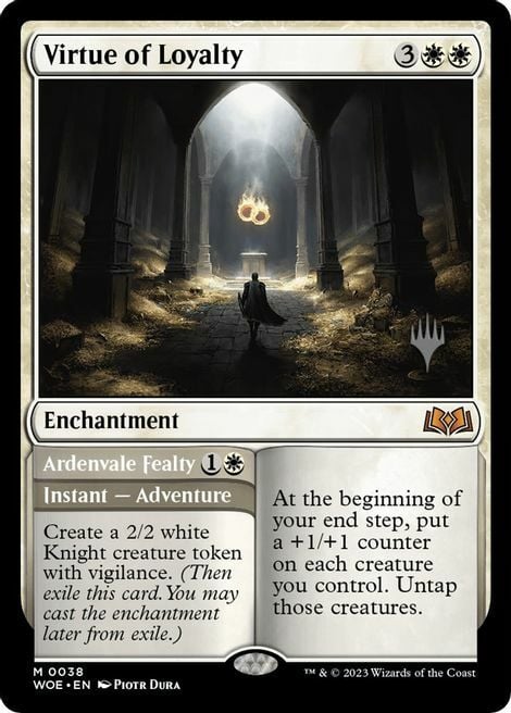 Create a 2/2 white Knight creature token with vigilance. (Then exile this card. You may cast the enchantment later from exile.)